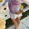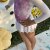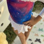 Triko za ritmičku gimnastiku, klizanje, fizičko, ples. Reckava suknjica. Trajna štampa. Ukrašen cirkonima.